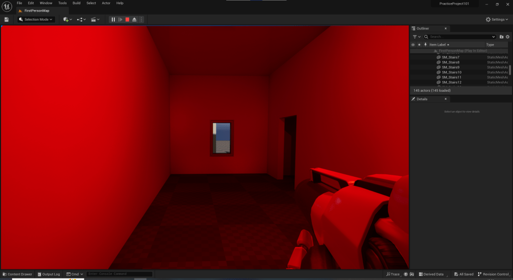 I then changed the colour of the light to red and placed in a dark corridor to create an ambiance and a sense of danger for the player