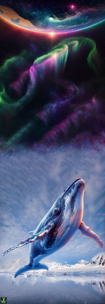 Today we used Photoshop to explore our existing skill in the application. I used images from pixabay to combine to create an image. I used three images, one of a a planet and space, one of and arctic land and one of a humpback whale.