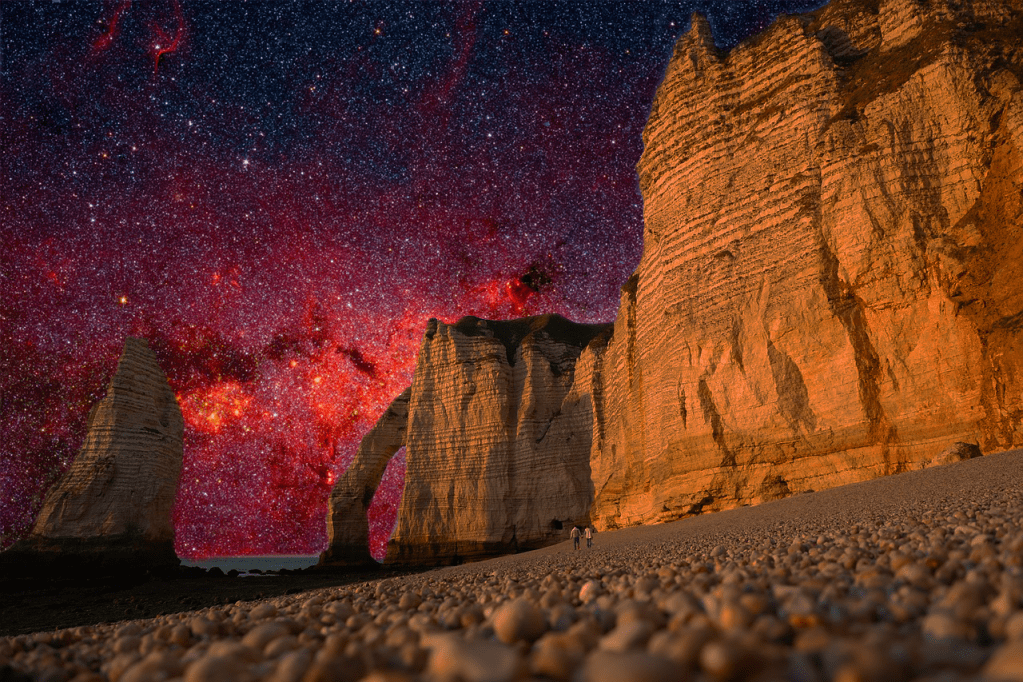 In this lesson we looked at masking and how to use it to layer landscape images to change the effect of the image. We were given the sample images of the milky way and a cliff and were told to combine them, then we were told to pick our own images and combine them. I chose a castle and a fiery sky to make it look like there was a was surrounding the castle.