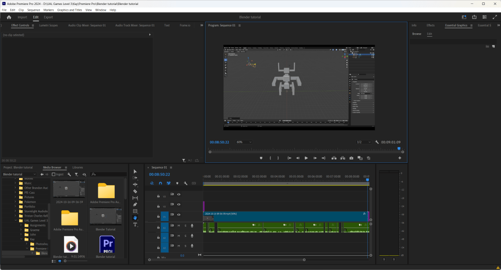 I then took the footage and voice recording into Premiere Pro and then made the footage run at half speed and cut out the umms and urrs in the voice recording so it sounded a bit more professional. I then created an end screen and a thumbnail for the video in Photoshop.