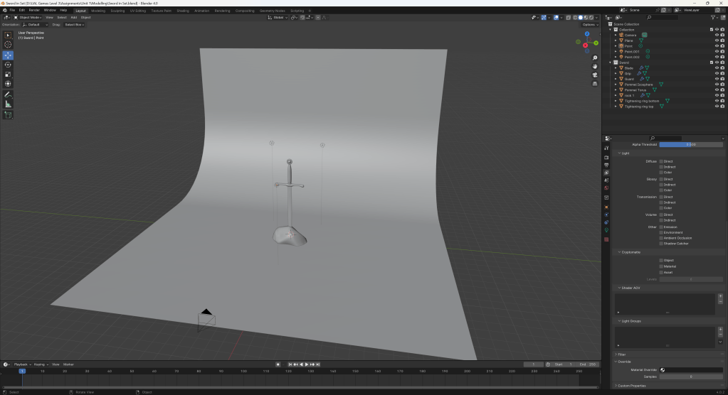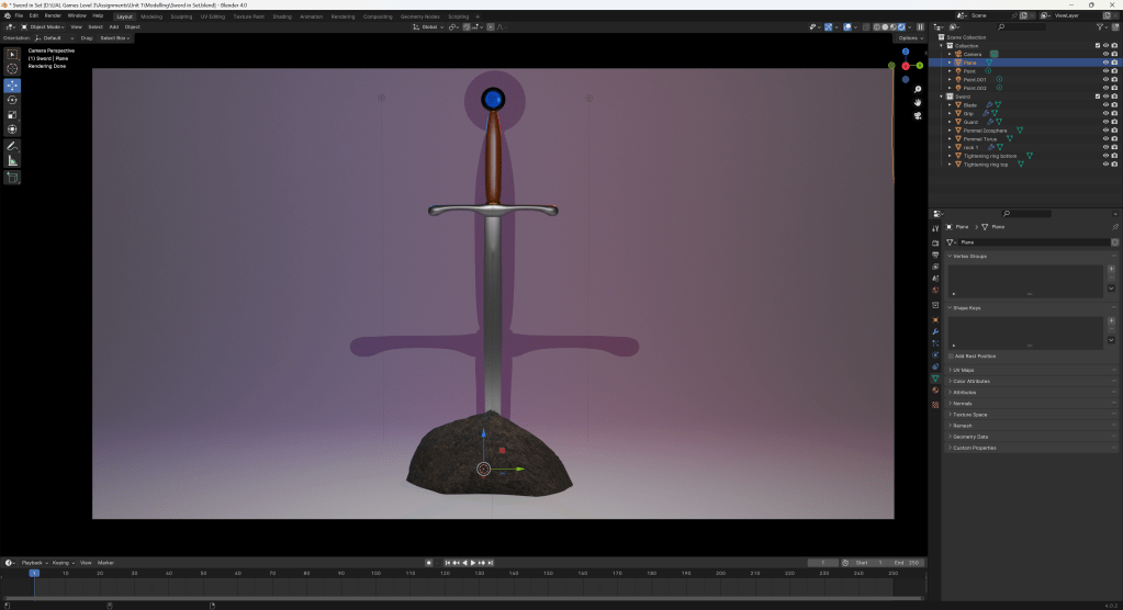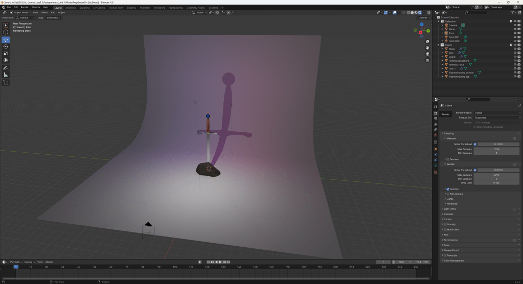 I used the sword in the stone from my first render in the studio set and lit in such a way to make the shadow look cool behind the sword.