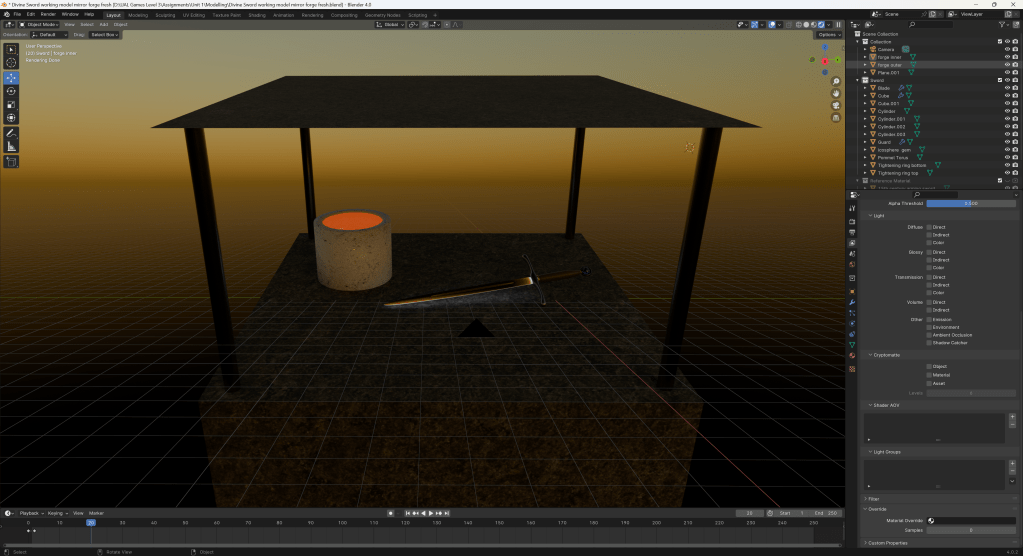 I created an environment around it to look like a forge and changed the Nishtia sky texture to make it look like a dark sunset.