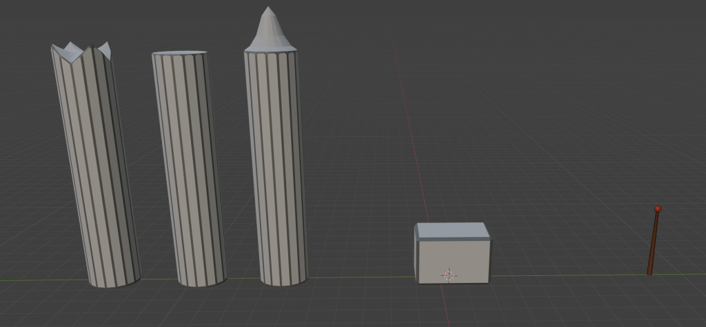 I next decided to look at my third level and how I would make assets for it. I went into blender and remade the stone block I made for the portal and then made a pillar out of a cylinder and added some detail to them so there could be dark and light sections and I will texture them properly in Unreal. I also made a torch that I will add fire to in Unreal.