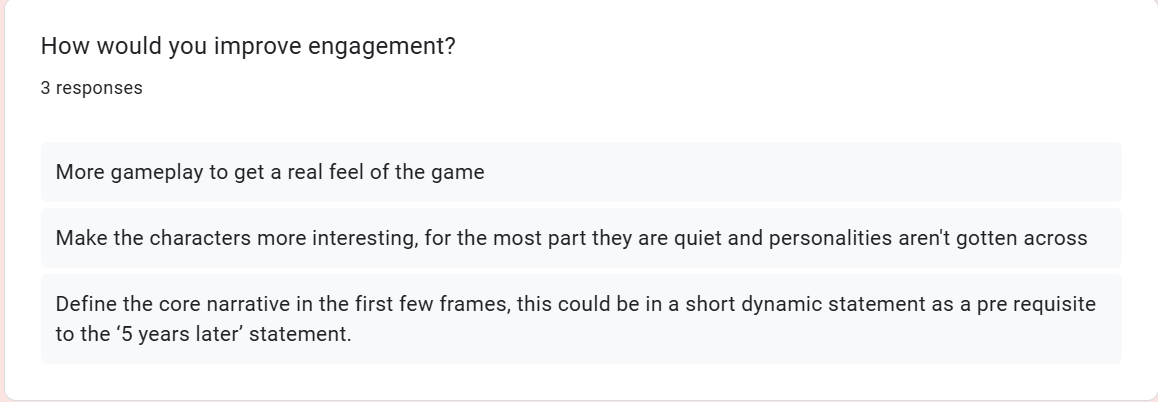- I need more actual gameplay footage to make it feel more like a game and not just a visual novel.
