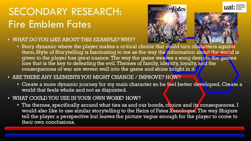 I have been procrastinating my secondary research and have decided to change each one for various reasons. With Fire Emblem Fates I feel I had enough story research from Pokemon Super Mystery Dungeon so I have decided to look at character art from Fire Emblem Engage. I have found that I own an the game’s…